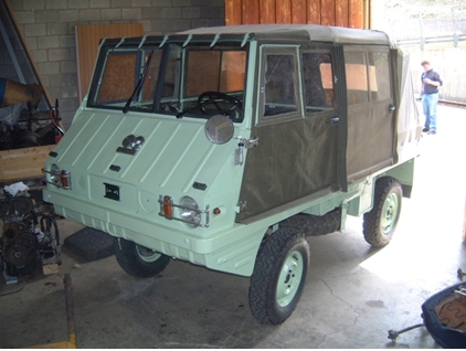Das ist ein seltener Steyer Puch Haflinger 4-Plätzer. Diesen hat Christian mit niegelnagelneuer Plattform neu aufgebaut. Natürlich wurden alle Sicken und andere Karrosseriespezifischen teile originalgetreu wiederhergestellt. Die Mechanik wurde ebenfalls Teilüberholt. Getriebe und Motor aber nur neu abgedichtet. Eigentlich hatten wir mal geplant den Haflinger als 45km/h vorzuführen. Als ich aber zu diesem Zeitpunkt bereits den Führerschein hatte wurde er verkauft, da das Fahrgefühl nicht gerade unseren Ansprüchen entsprach und leider keine Geländepiste in nächster Nähe ist.