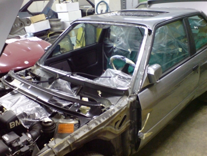 Ja am 31.5.2006 stand dann dieses wunderbare Auto bei mir. Mein erster M3! Naja einiges zu machen gab es natürlich schon. Da wären z.b. der Windfang der total gerostet hat. Aber zum Glück nur wegen unsachgemässer handhabung beim letzten Frontscheibenwechsel und halt so die üblichen stellen: Nummernbeleuchtung und Wagenheberaufnahme vorn. Der grösste Teil haben mein Vater Christian und ich selber gemacht. Nur den neuen Windfang einlöten und schweissen überliessen wir gerne unserem Partner für Malerei Carrossier Pfister in Herisau (http://www.pfister-ag.ch).