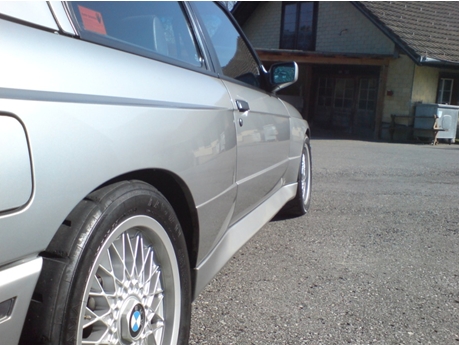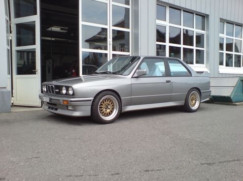 Hier seht ihr meinen M3 bereit für die MFK. Super wie der Schatten die Kanten des M3 hervorholt… Die Felgen auf dem Foto sind keine BBS, die waren mir einfach zu Komerz, das sind Zeitgenössische ACT Leitmetallfelgen. Da ich ein Fan von originalen Autos bin, ist mir wichtig dass alles seine Richtigkeit hat und es musste nicht Gebörtelt werden.
